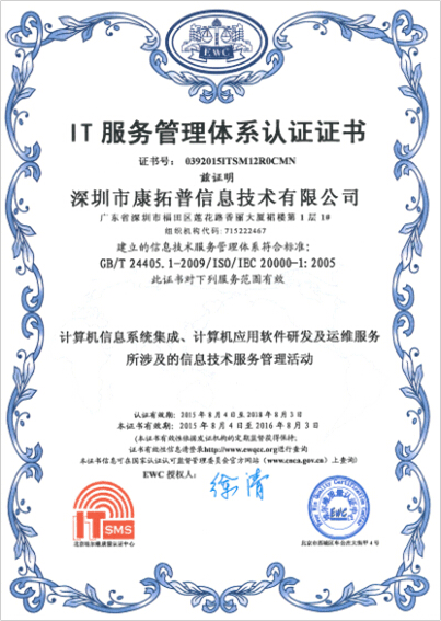 ISO20000 IT服务管理体系认证