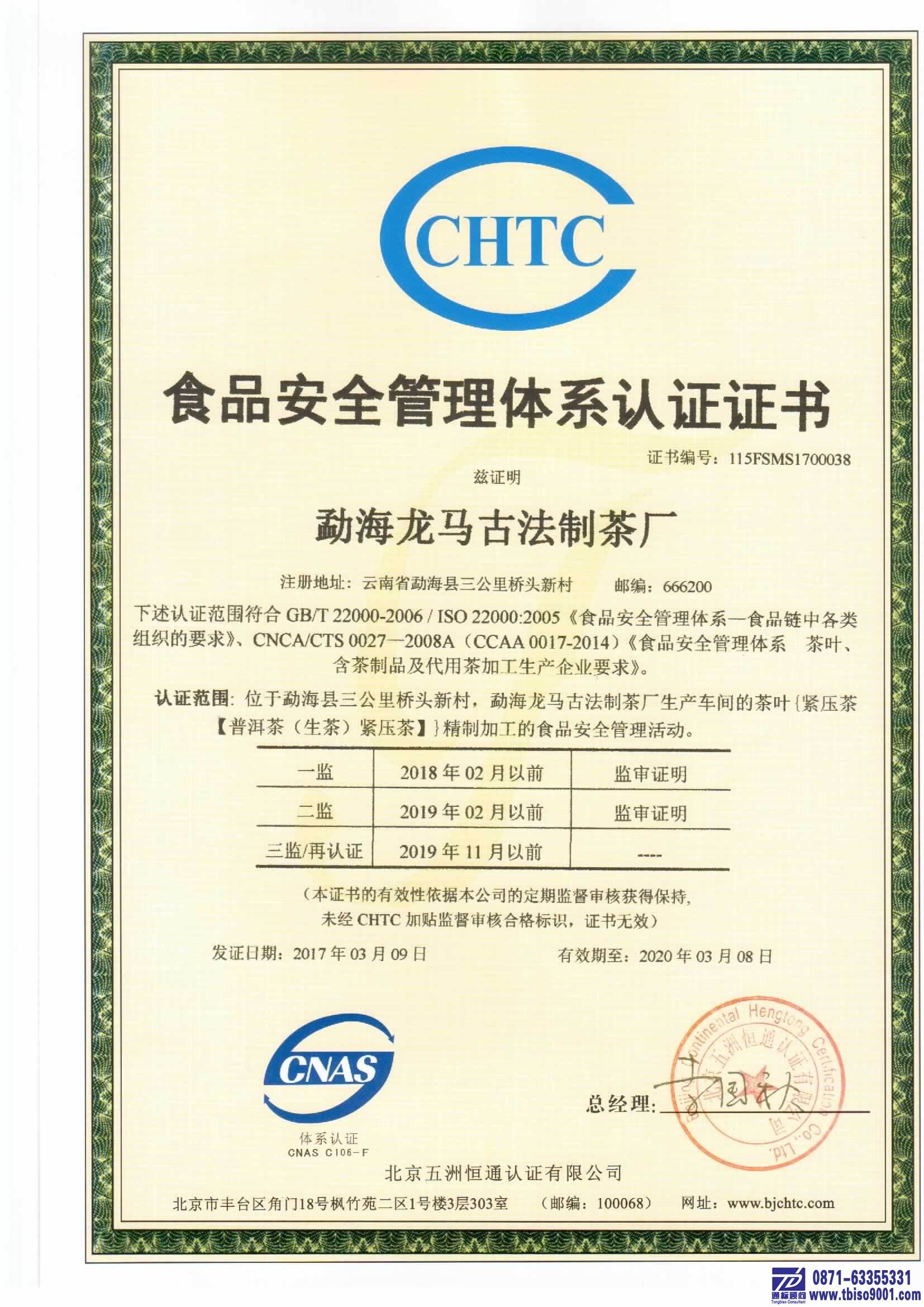 ISO22000食品安全管理体系认证